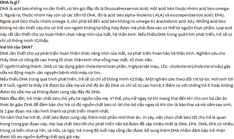 DHA là chất dinh dưỡng cần thiết, cần bổ sung hàng ngày.